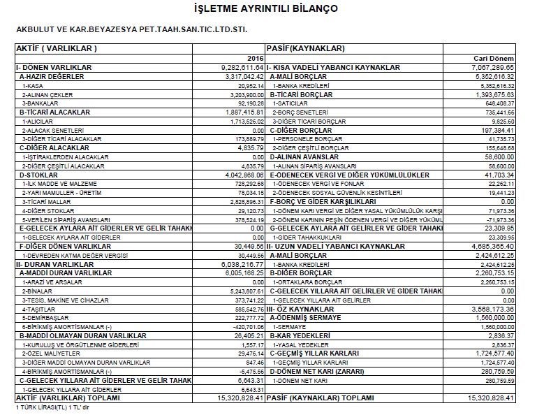 Bilanço - Gelir tablosu