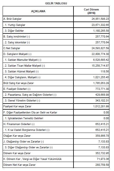 gelir Tablosu